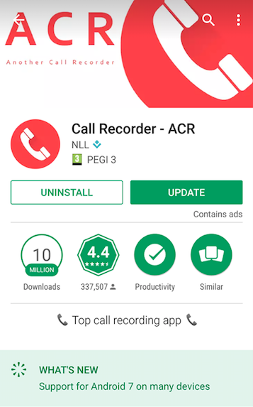 انه برنامج Call Recorder – ACR ويمكن تحميله بسهولة من متجر ابل او متجر جوجل بشكل سريع وسهل ويقوم البرنامج بتسجيل لمكالمات بشكل غير محدود وعدد مكالمات غير محدودة ايضا ويمكنك مراجعة سجل التسجيلات والحذف واعادة التسمية والعديد من الخيارات الاخرى .